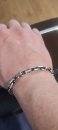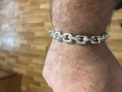 Полновесный браслет.На текущей странице изображено фото мужского серебряного браслета якорного плетения с чернением. Мужским его в первую очередь делают размеры, да и, откровенно говоря, угловатые и несколько грубые формы «Якоря с гранями» в качестве браслета не часто пользуются спросом у девушек, хотя безусловно есть и такие.