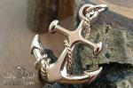 Дизайн выполнен в объемной форме с плавными линиями и зеркальной полировкой. Центральный элемент дополнен декоративным канатом, обвивающим якорь, что придает изделию динамику и усиливает тематический характер. Аккуратные пропорции и проработанные детали создают эффект премиального ювелирного исполнения.